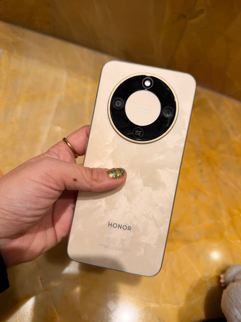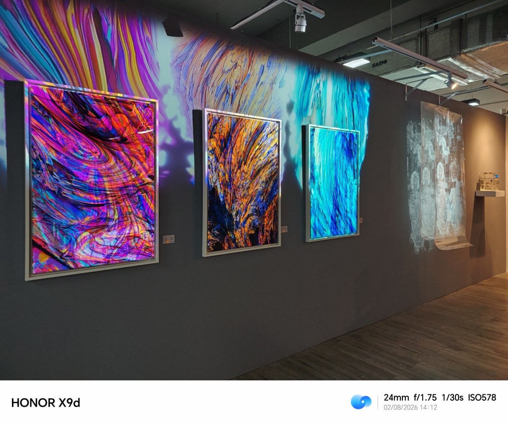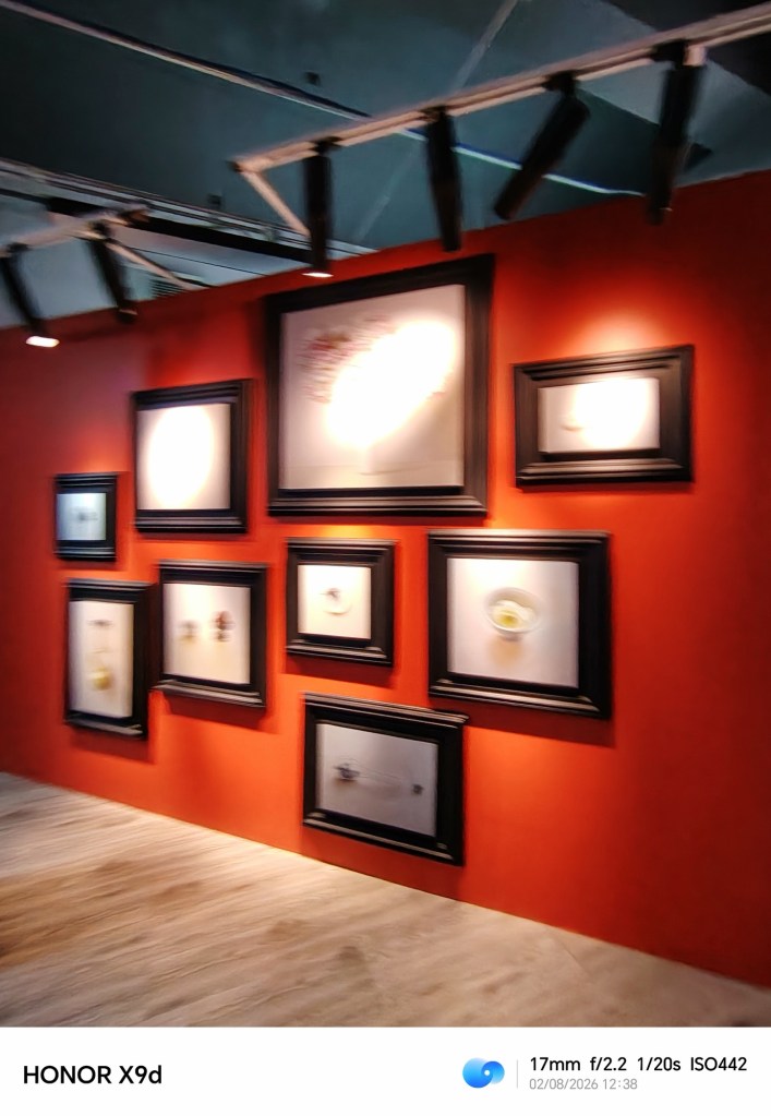The 108MP camera with optical stabilization captured textures the way I remember seeing them, brushstrokes, layered paint, the grain of mixed media pieces. Even low-lit installations came through clearly, and the 6.79-inch 1.5K OLED display made reviewing the photos feel almost like standing in front of the works again, colors deep and surfaces sharp in a way that didn’t flatten the art into just another phone image.