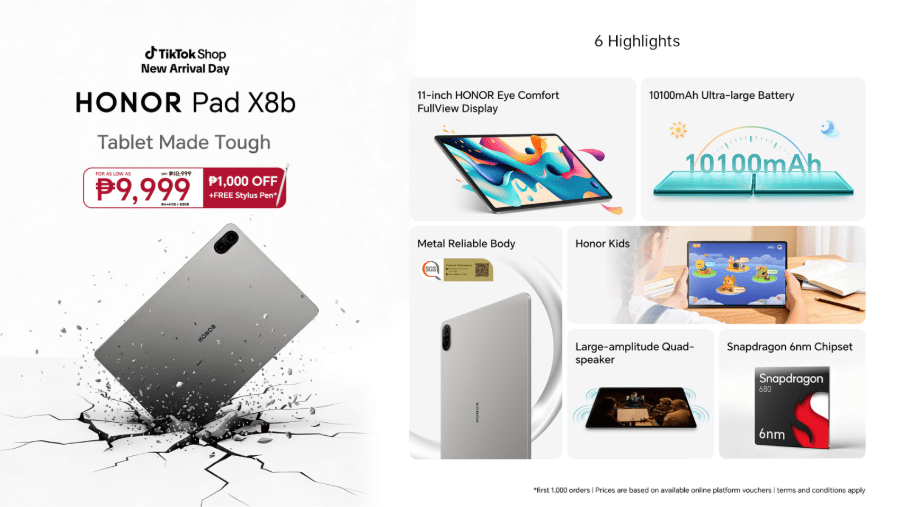 “With the HONOR Pad X8b, we designed a device that empowers people to stay productive and connected—whether it is moms managing their day, entrepreneurs growing their businesses, professionals on the go, or students pursuing their goals. It goes beyond durability, combining long-lasting battery life, a brilliant display, and performance that users can trust every step of the way,” said Stephen Cheng, Vice President of HONOR Philippines.